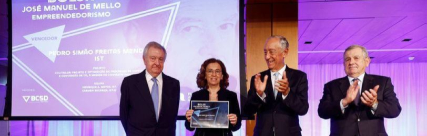 Congratulations to Pedro Mendes (DEQ, PI), Henrique Matos and Carmen Bacariza on winning the José Manuel de Mello 2024 – Entrepreneurship award, from the Amélia de Mello Foundation.